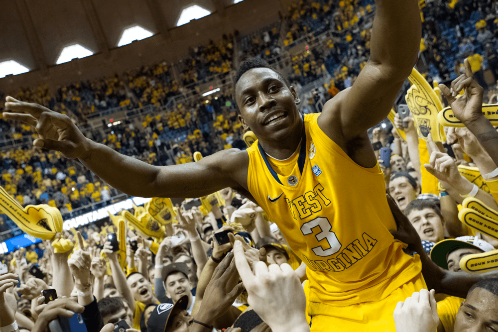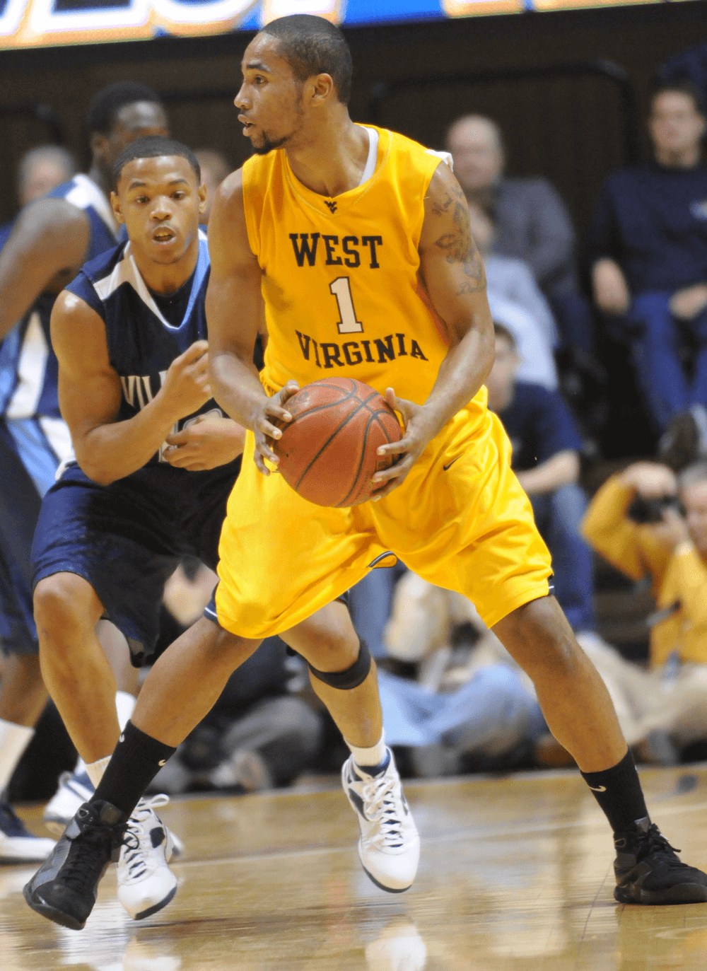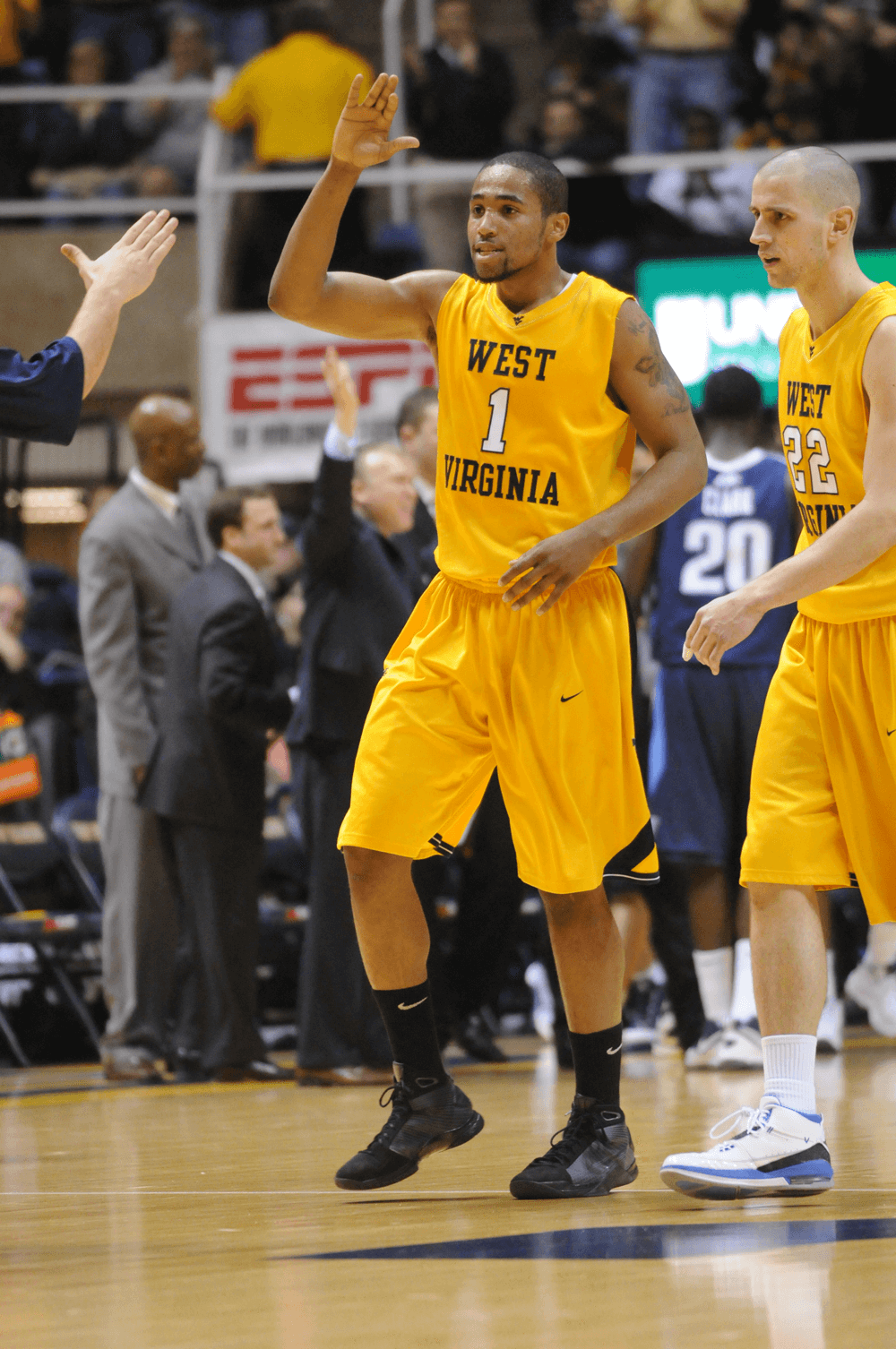 Da’Sean Butler celebrates after scoring two of his career-high 43 points against Villanova in the Mountaineers’ 93-72 victory over the 13th-ranked Wildcats