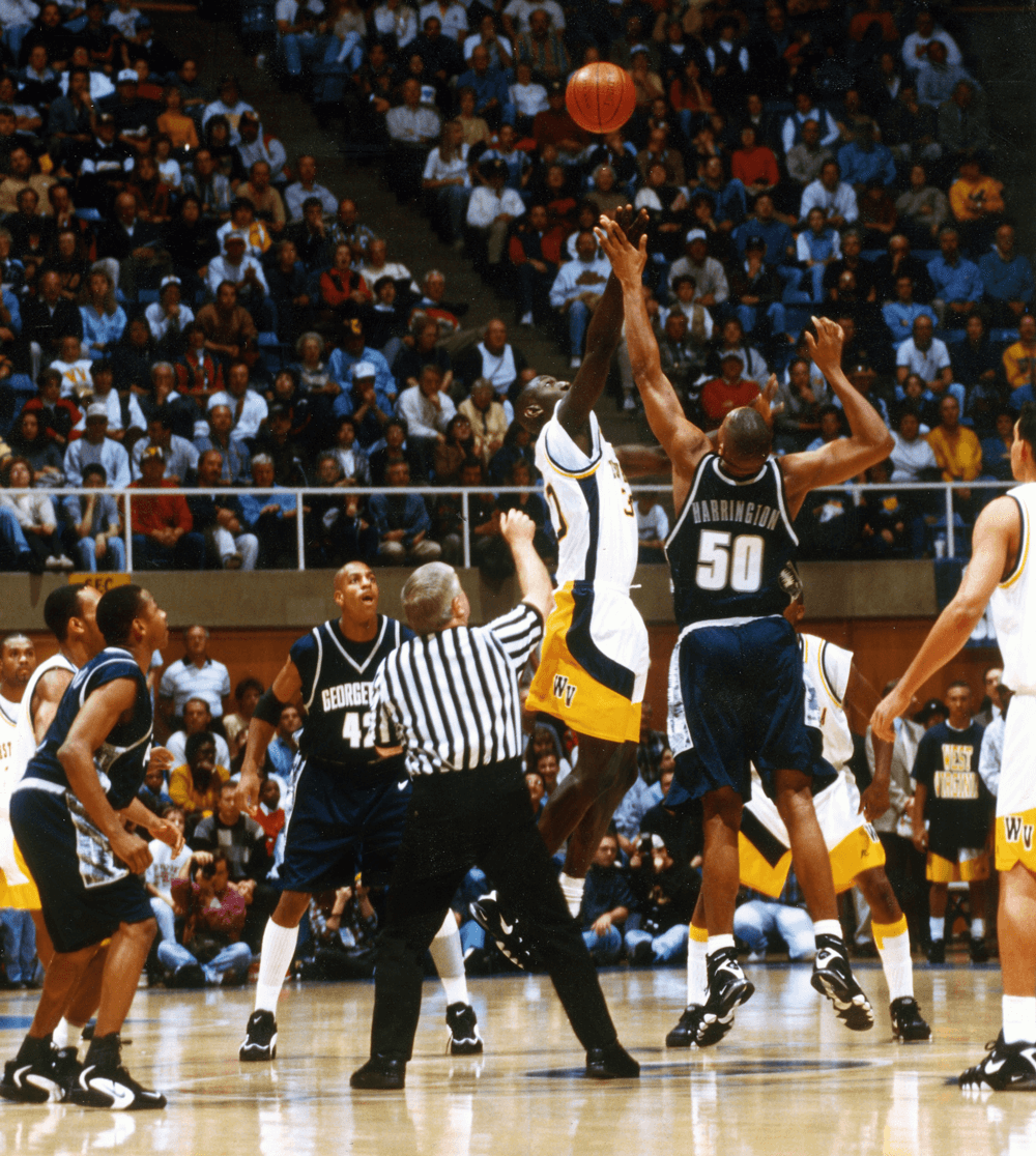 Jan. 5, 1998 – The first-ever ESPN Big Monday telecast from the WVU Coliseum resulted in an 81-70 victory over Georgetown.